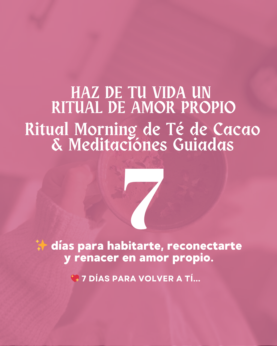 Durante 7 días, transformarás tu rutina en un acto sagrado de amor propio, acompañado de meditaciones guiadas que te ayudarán aperturar tu corazón, sembrar nuevas intenciones y expandirte en amor desde tu interior...